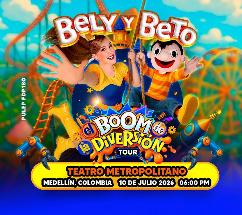 ¡Llega el espectáculo que hará vibrar a todos los pequeños! Por primera vez en Colombia desde México: El show original de Bely y Beto “El Boom de la Diversión” Un show lleno de música, baile, personajes encantadores y mucha interacción para toda la familia. Ven a vivir una experiencia mágica donde la diversión explota en cada rincón. ¡Canta, baila y sueña junto a Bely, Beto y todos tus personajes favoritos en un evento inolvidable!