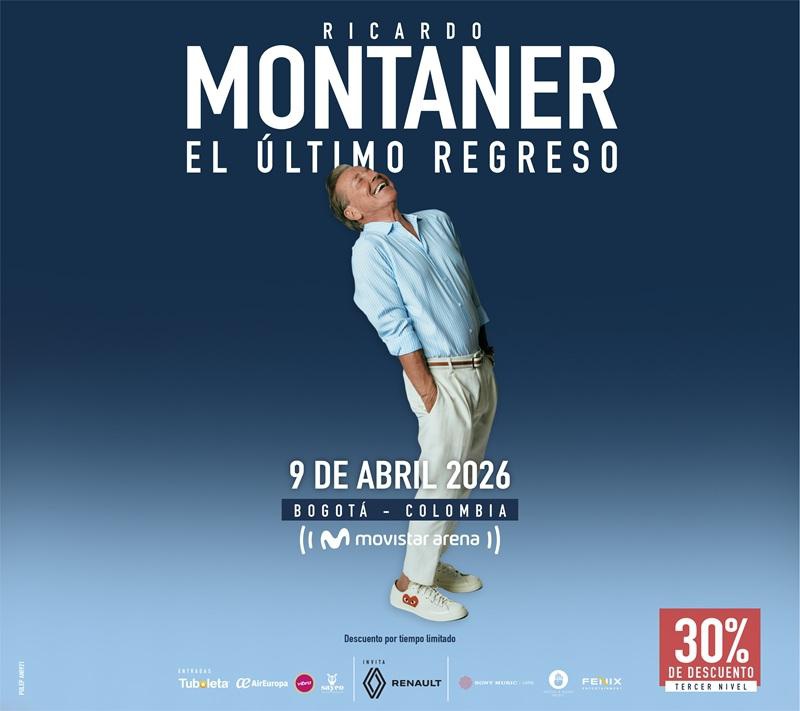 El 8 de abril de 2026, el Movistar Arena de Bogotá abrirá nuevamente sus puertas para recibir a Ricardo Montaner, quien suma una segunda fecha de su aclamado espectáculo “El Último Regreso Tour”, tras el éxito en ventas de su primera presentación en la capital.Reconocido por su cercanía con el público y su don para transformar las emociones en canciones, Montaner ofrecerá mucho más que un concierto: será un reencuentro íntimo con sus seguidores, un recorrido por melodías que han acompañado historias de amor, nostalgia y esperanza a lo largo de generaciones. En una atmósfera cálida y profundamente emotiva, temas como “Te quiero”, “Déjame llorar” y otros clásicos del corazón volverán a crear ese lazo único entre el artista y su público.Los asistentes vivirán una noche colmada de música, anécdotas y momentos compartidos, donde la sensibilidad y el carisma de Ricardo Montaner confirmarán, una vez más, por qué su obra sigue vigente y trasciende el tiempo, las modas y las generaciones. -