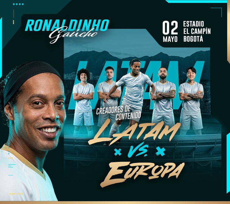 Como gran protagonista de la noche, el legendario Ronaldinho Gaúcho estará presente, llevando su magia a un escenario donde también se darán cita figuras y leyendas del fútbol colombiano, en un cruce poco habitual entre generaciones, culturas y millones de seguidores en tiempo real.