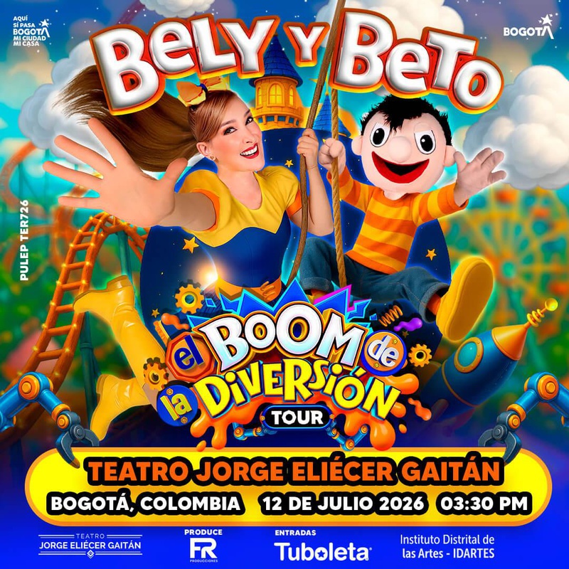 ¡Llega el espectáculo que hará vibrar a todos los pequeños! Por primera vez en Colombia desde México: El show original de Bely y Beto “El Boom de la Diversión” Un show lleno de música, baile, personajes encantadores y mucha interacción para toda la familia. Ven a vivir una experiencia mágica donde la diversión explota en cada rincón. ¡Canta, baila y sueña junto a Bely, Beto y todos tus personajes favoritos en un evento inolvidable!