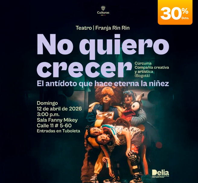La Obra NO QUIERO CRECER proyecto ganador de la Beca de Creación y Producción para la Reactivación del Sector Cultural de las Artes Escénicas” nace de lainquietud de construir una pieza escénica que tome el evento de la muerte y el duelo como excusa para dialogar con la infancia, y la familia en general acerca de laexaltación y plenitud de vivir acorde a los sueños, las pasiones, y proyecciones propias en todos los ámbitos de la personalidad, desde su creación ha circulado endistintos escenarios tanto a nivel distrital como Nacional. Ha participado en el Festival de Teatro de Bogotá, y el festival Cultural de Boyacá. Hizo parte de laprogramación Consentidos del teatro Jorge Eliecer Gaitán, y ha estado en temporada en el Teatro El Parque, el Teatro El Ensueño, Teatro Cafam, y estuvo en elproyecto pedagógico del Teatro Nacional, y en la programación de Confama en Medellín, y en ConfaRisaralda en Pereira.