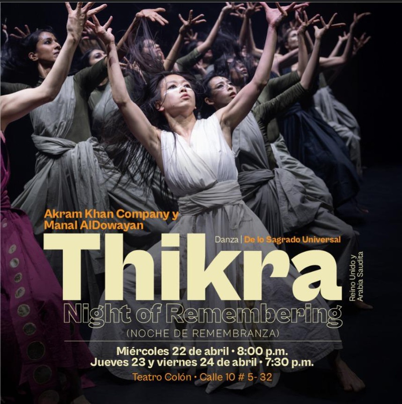 Thikra, que significa “memoria”, “recuerdo”, “pensamientos del pasado” o “recuerdo” en árabe, es una performance que evoca, a través de la danza contemporánea, la idea de que “sin pasado, no hay futuro”. La coreografía y los bailarines encarnarán los conceptos del conocimiento ancestral, el olvido, el aprendizaje y la sanación colectivos. La performance representará una reunión anual imaginaria realizada para conectar con el conocimiento ancestral. Durante una noche, el presente y el pasado se unen y se abrazan. Thikra incorpora bailarinas de Bharatanatyam y danza contemporánea occidental, creando un puente entre culturas, tradiciones y perspectivas híbridas. La obra no explora diferentes estilos ni analiza las conexiones entre Oriente y Occidente. La coreografía busca emplear las tradiciones y rituales inherentes a las bailarinas de Bharatanatyam a través de una perspectiva creativa de creación dancística en colaboración con las bailarinas contemporáneas. Los tres capítulos que siguen la trayectoria de Thikra se conciben a través de la exploración de imágenes de inspiración literaria y mitológica heredadas a lo largo del tiempo. Akram Khan es uno de los artistas de danza más célebres y respetados de la actualidad. En poco más de 23 años ha creado una obra que contribuye significativamente a las artes en el Reino Unido y en el extranjero. Su reputación se ha cimentado en el éxito de producciones imaginativas, accesibles y relevantes como El libro de la selva reimaginado, Outwitting the Devil, XENOS, Hast the Lions, Kaash, iTMOi, DESH, Vertical Road, Gnosis y Zero Degrees.